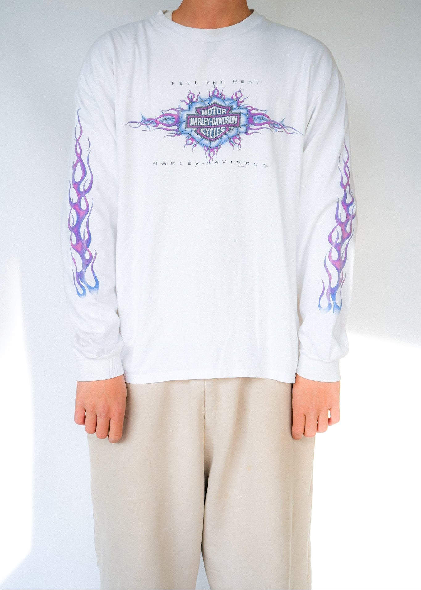 1990s Harley Davidson L/S Rare Purple Flame Sleeve Hits